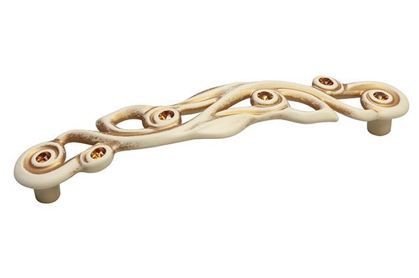 Ручка скоба WMN.724X.128.MTZT5, материал Замак, отделка Золотая патина Золото Слоновая кость Хрусталь, 150*29*27 мм